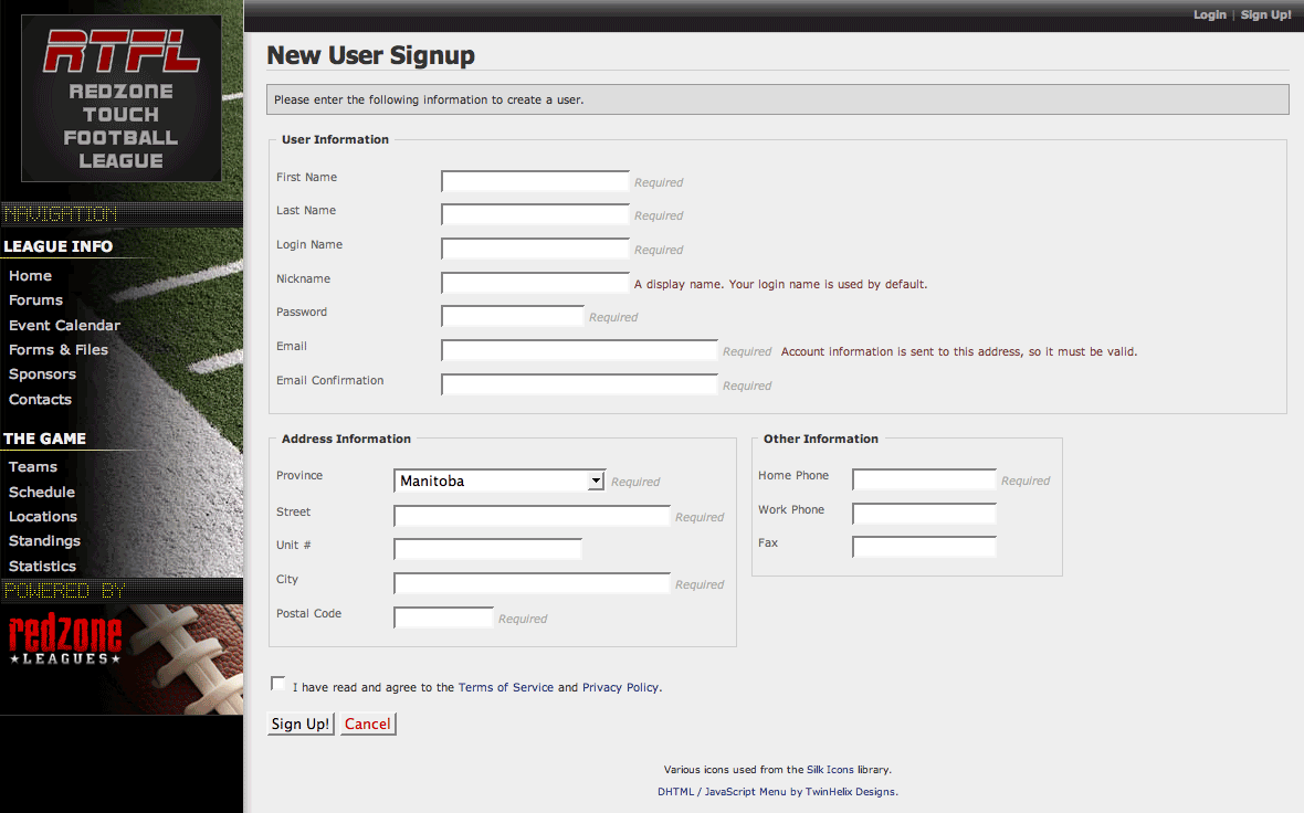 Traditionally people have to wait in registration lines or mail in forms which are then processed by members of the league. Redzone eliminates all that craziness with its simple sign-up process, and as an administrator, you'll have complete access to your entire membership database.